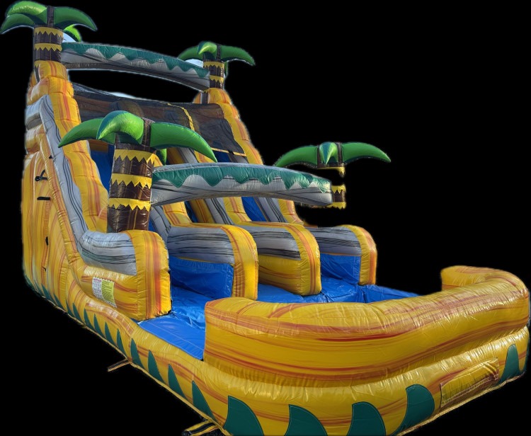 Big yellow Double line palm trees water slide with big nice pool